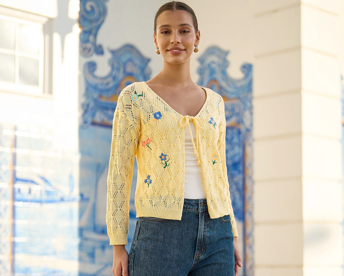 Style tip: Layer a fine knit cardigan over a printed dress or pair it with wide-leg trousers and a simple top for an effortless spring outfit.